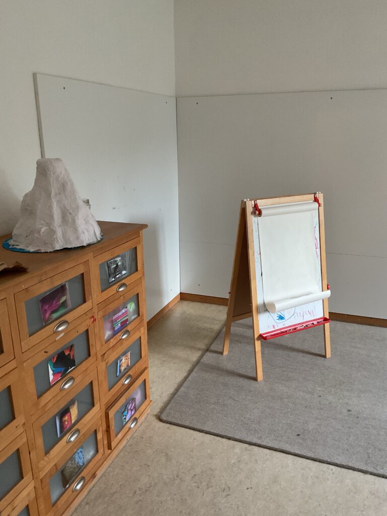 Das Atelier bietet unseren Kindern die Möglichkeit, die eigene Kreativität frei zu entfalten. Durch die unterschiedlichen Mal- und Bastelmaterialien, großen Leinwänden sowie Alltagsmaterialien, können sie eigene Ideen entwickeln und sie umsetzen.