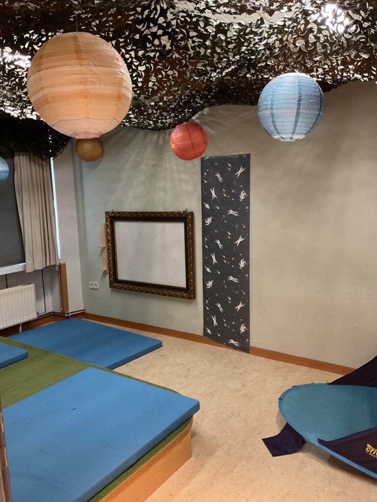 Hier finden die Kinder verschiedene Möglichkeiten zu experimentieren, forschen und erkunden. So können sie zum Beispiel Alltagsmaterialien auseinanderschrauben, gezielte Experimente durchführen oder Naturmaterialien erforschen.